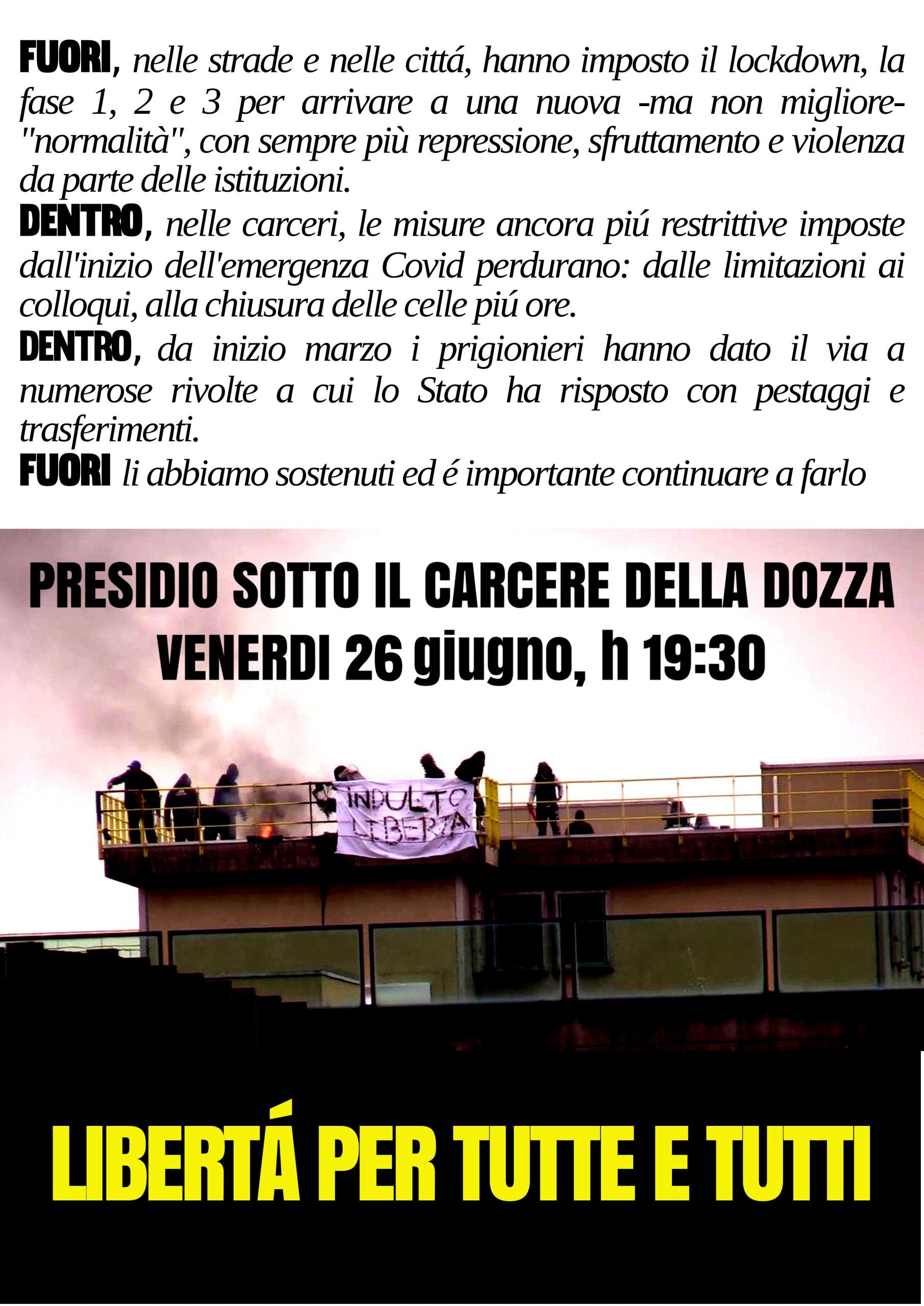 PRESIDIO SOTTO IL CARCERE DELLA DOZZA SIAMI TUTTX COINVOLTX! VENERDì 26 ALLE 19:30 ADERIAMO AL PRESIDIO SOTTO IL CARCERE DELLA DOZZA FUORI LI ABBIAMO SOSTENUTI ED È IMPORTANTE CONTINUARE A FARLO!